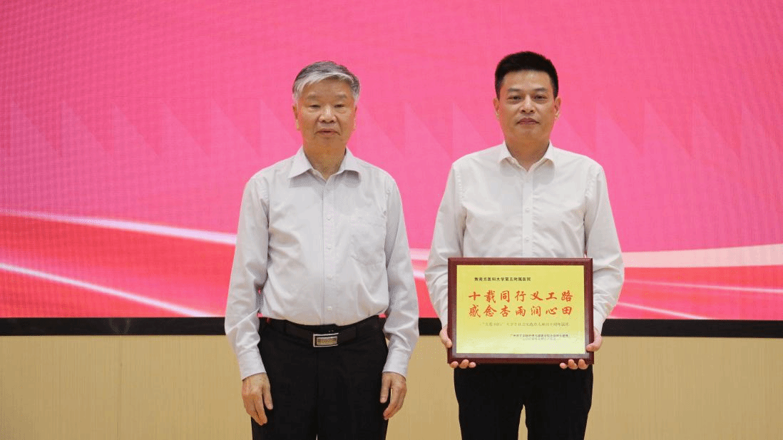 广州南方学院党委书记李建超代表我校向南方医科大学第五附属医院敬赠致谢牌匾。