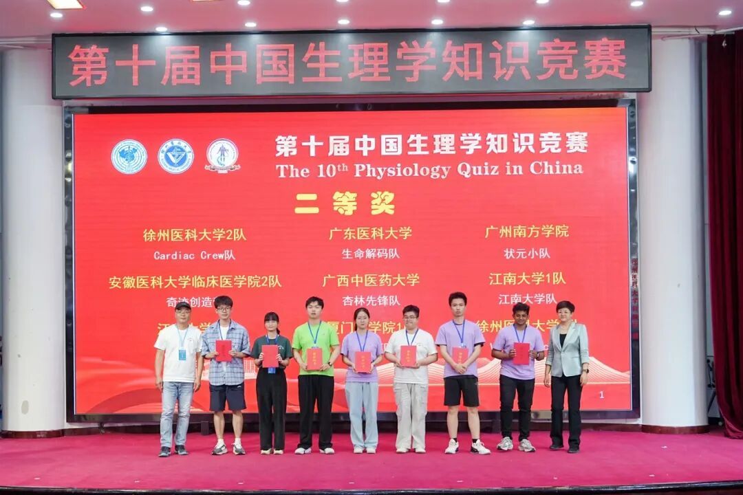 2025年5月16日至5月19日,由中国生理学知识竞赛组委会、徐州医科大学和江苏省生理科学学会联合主办的第十届中国生理学知识竞赛决赛,吸引了全国多所高校及国际友校同台竞技。在我院韩婷老师、张汉荣老师和李文睿老师的悉心指导下,我院2023级护理学专业学生刘芳、蒋曦煜、冯稳权、江佳成凭借扎实的专业功底和默契协作斩获决赛二等奖。