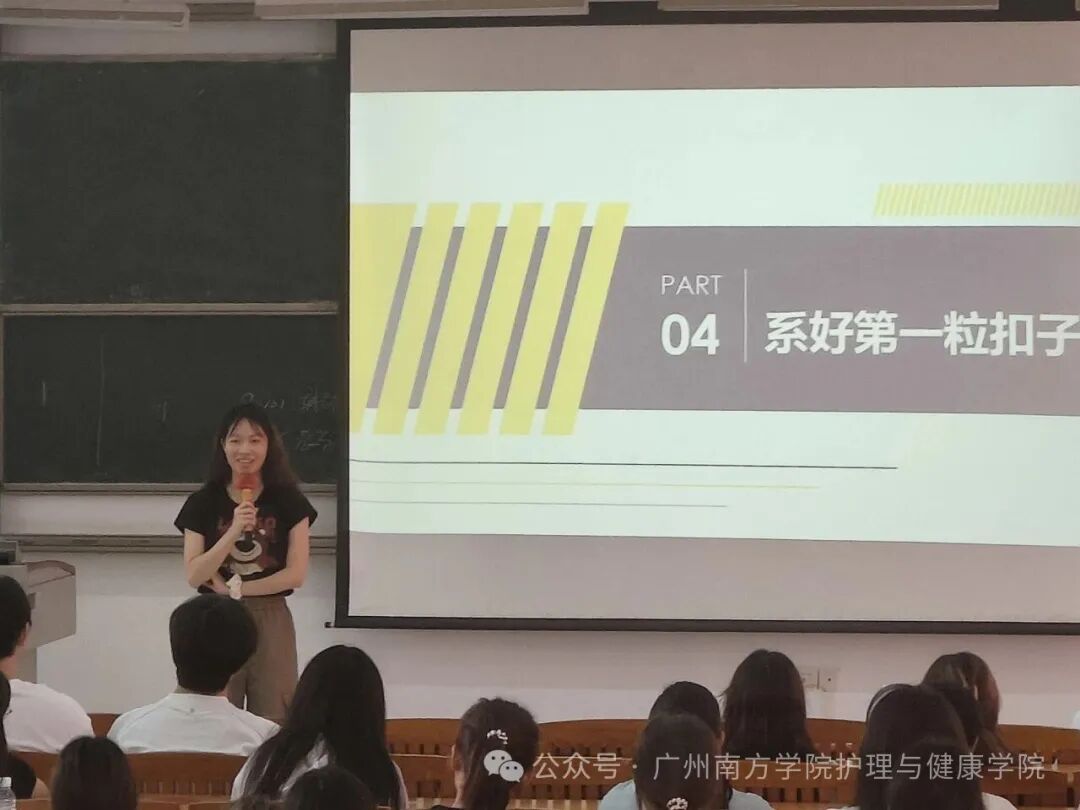 会议伊始,辅导员李金豪老师为新生介绍了自己的信息。其次,他围绕守规矩、懂礼貌、看通知三个方面进行深入的讲解,接着介绍了请假和预约的流程及考勤制度,在最后何送妹老师教导新生系好大学的第一粒扣子并对大家寄予厚望,帮助新生加深对学院日常生活和管理的了解。