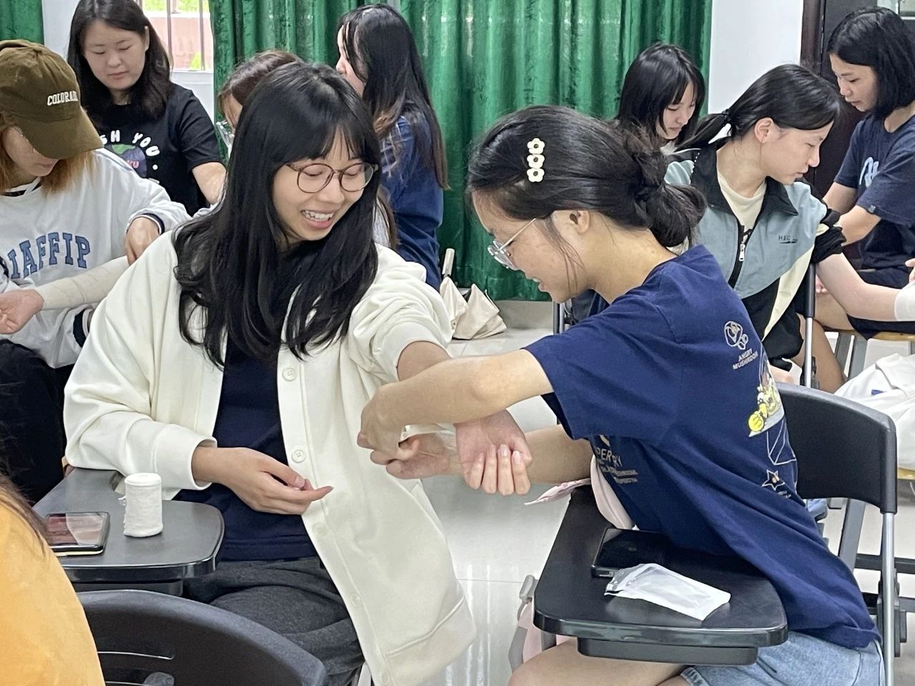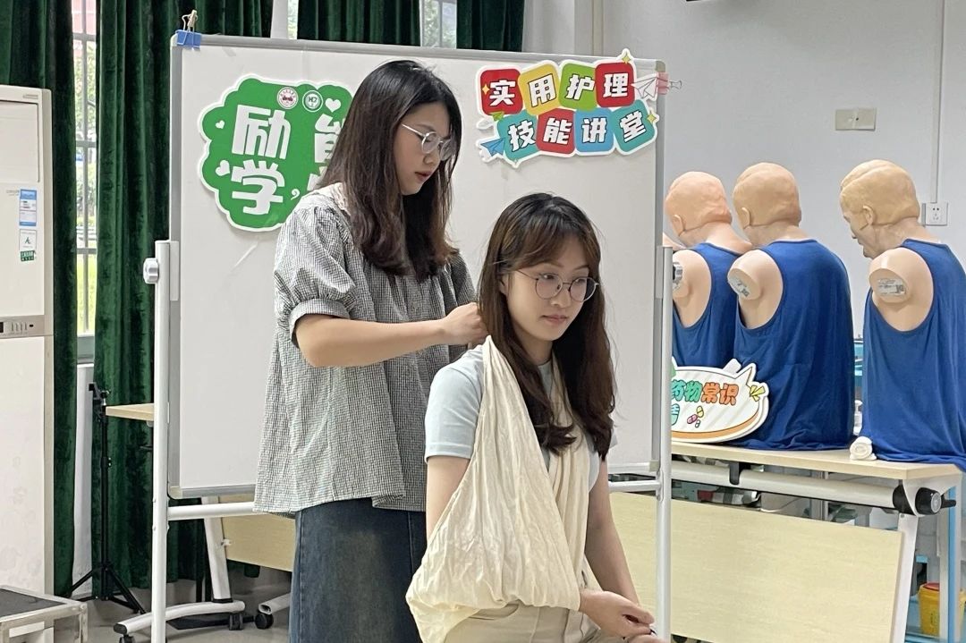 在日常生活中,我们可能会遇到各种各样的意外伤害,如跌倒、划伤、碰撞等。这些伤害往往伴随着伤口的出现,而正确的外伤包扎则是我们应对这些伤害的第一步。2024年5月19日,护理与健康学院在10教101室开展励能学堂之急救护理护理技能篇的外伤包扎课程,本次授课小老师为护理与健康学院黄嘉仪同学。
