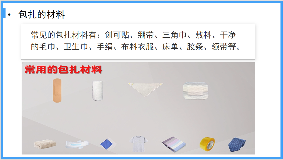 正确的包扎材料对于伤口的愈合和恢复至关重要,合适的包扎材料可以有效地固定伤口,减少感染和并发症的风险,并促进伤口的愈合。以下是一些常见的包扎材料:无菌纱布、创可贴、绷带、三角巾、医用胶带。在急救过程中,我们需要根据患者的具体情况选择合适的包扎材料和包扎方法,以确保患者得到及时有效的救治。