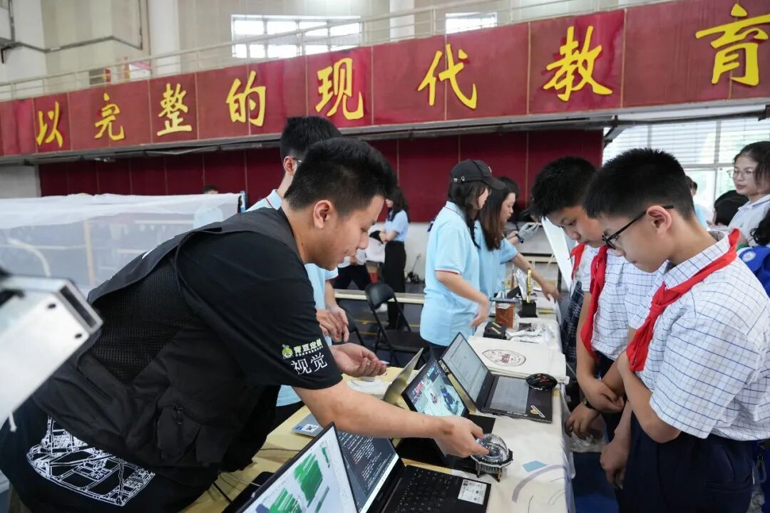现场设置科技互动体验、竞赛交流等多个主题同学们“大手拉小手”在互动活动中充分体验科技的乐趣
