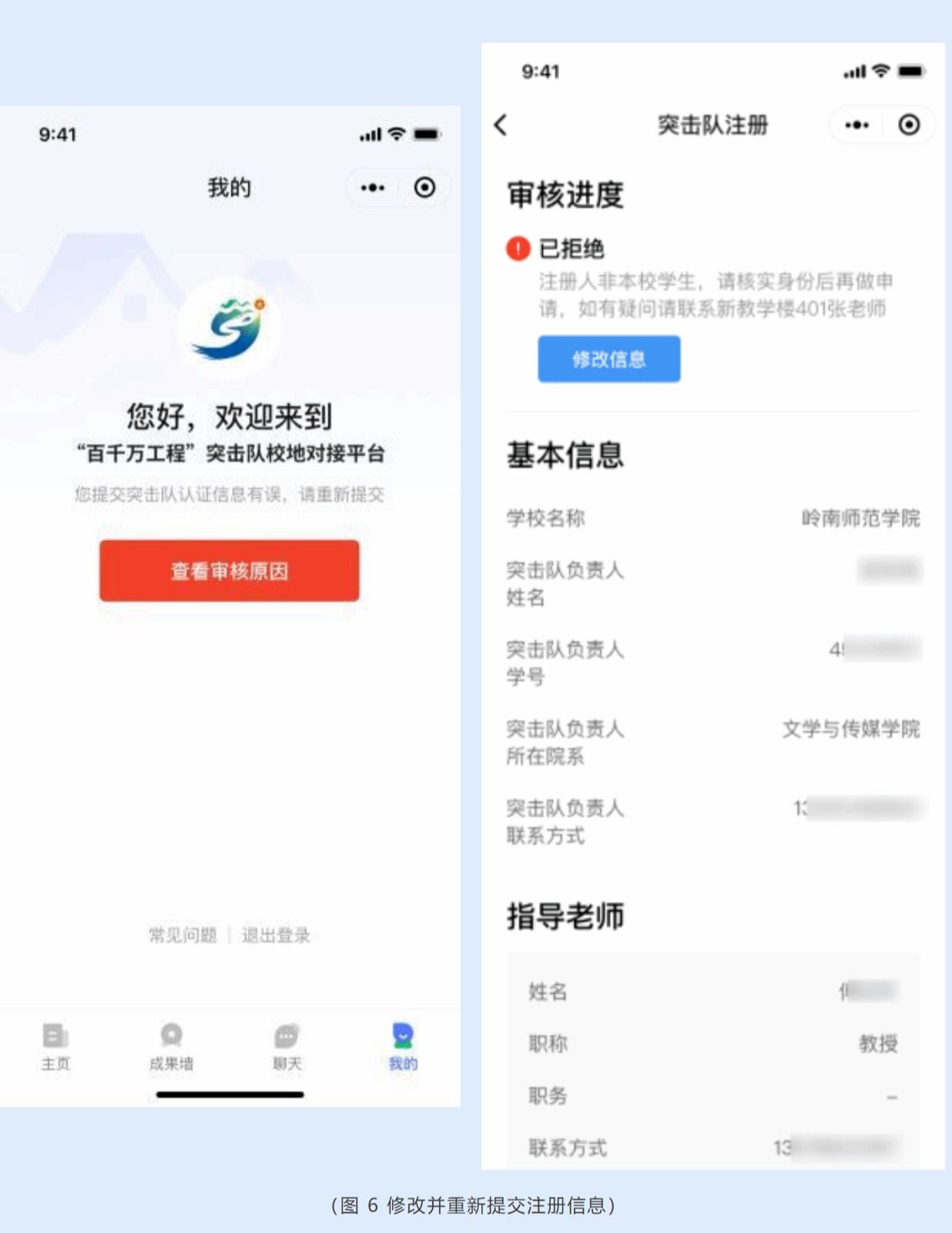 若注册信息被学校团委驳回,请根据驳回原因及时修改注册信息并重新提交。经学校团委审批通过后,即可完成注册与认证。