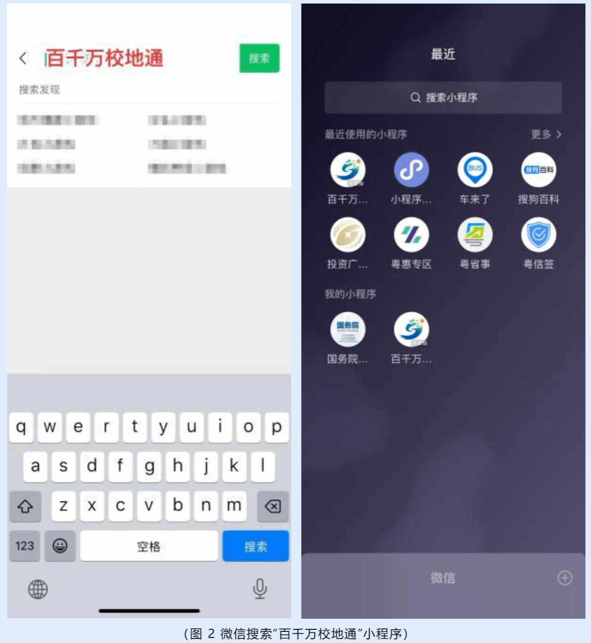 (二)在微信搜索“百千万校地通”小程序