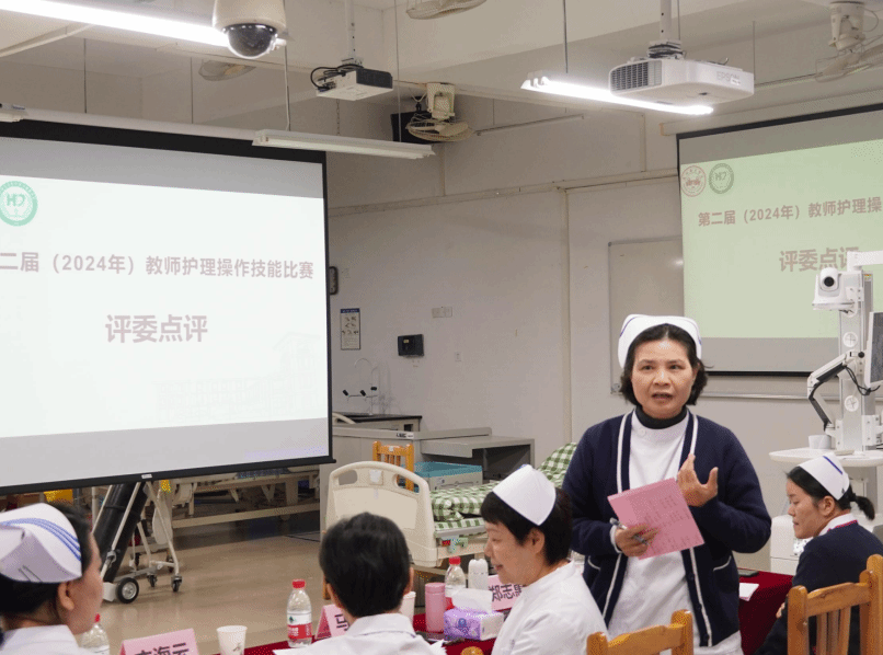 比赛结束后,评委专家们根据现场操作与授课展示进行点评,充分肯定了7名参赛教师的精彩表现,同时就操作示范、案例运用、人文关怀和其他细节问题给予宝贵建议。