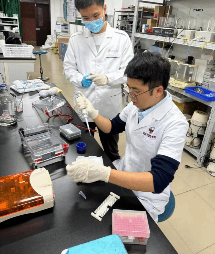 备赛期间,指导教师团队分工明确、精准施策,全程陪伴参赛学生全力冲刺。刘锐老师深耕项目核心,聚焦汇报答辩环节,从逻辑架构、考点剖析到数据呈现逐一打磨,为学生构建起清晰严谨的汇报体系。张汉荣老师则专注实验操作,围绕试剂配比、仪器使用与流程优化等关键细节,进行手把手示范与纠偏,有效提升了学生的操作规范性与熟练度。两位老师在承担日常教学任务的同时,充分利用课余与周末时间,持续驻守实验室,与学生共同钻研、突破难点。