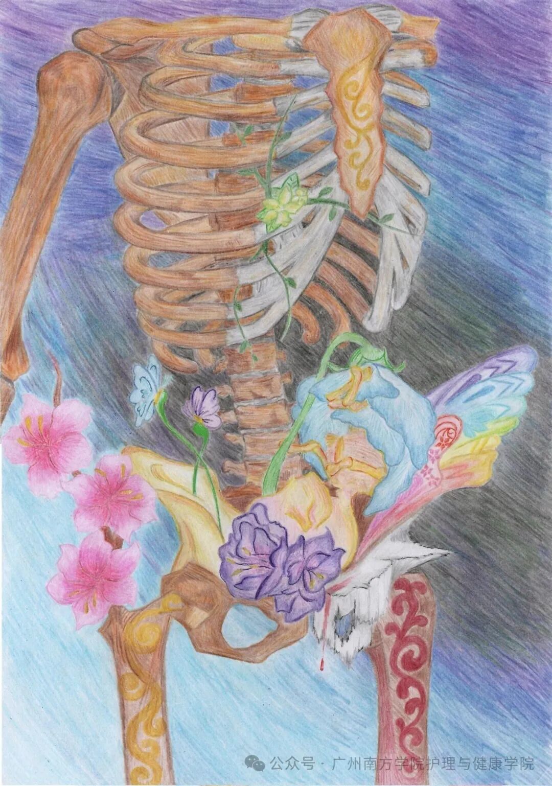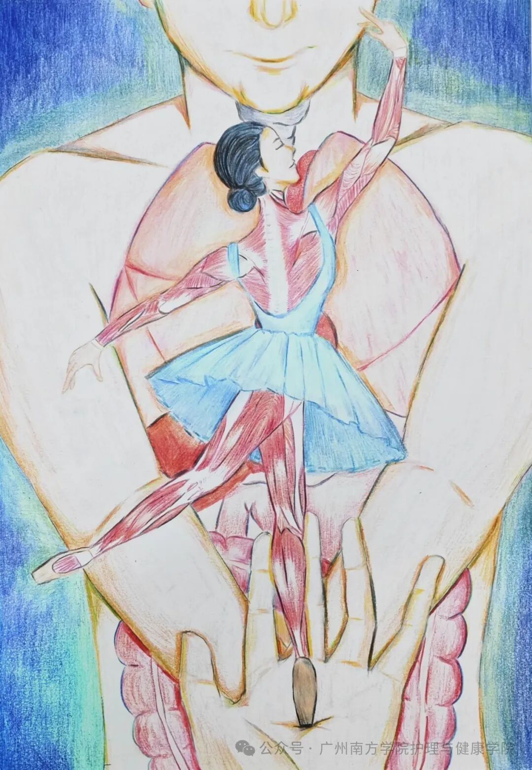 当素描笔遇见解剖图,当创造力碰撞专业知识,护理学子用独特的视角谱写了一曲生命礼赞。每一处精准的肌肉走向,都是对医学的虔诚致敬;每一抹灵动的色彩铺陈,都是对艺术的深情告白。