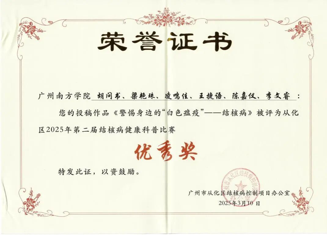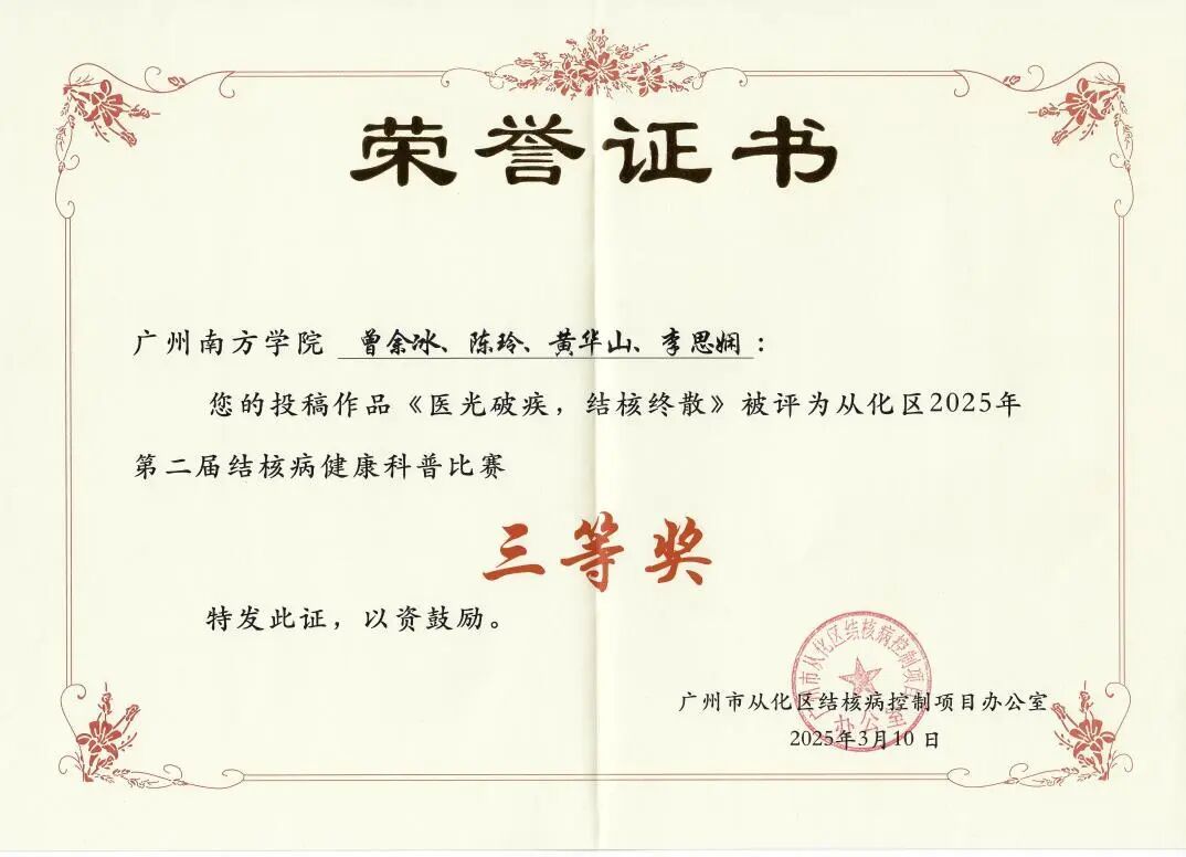喜报 | 我院学子斩获广州市从化区第二届结核病健康科普比赛奖项!