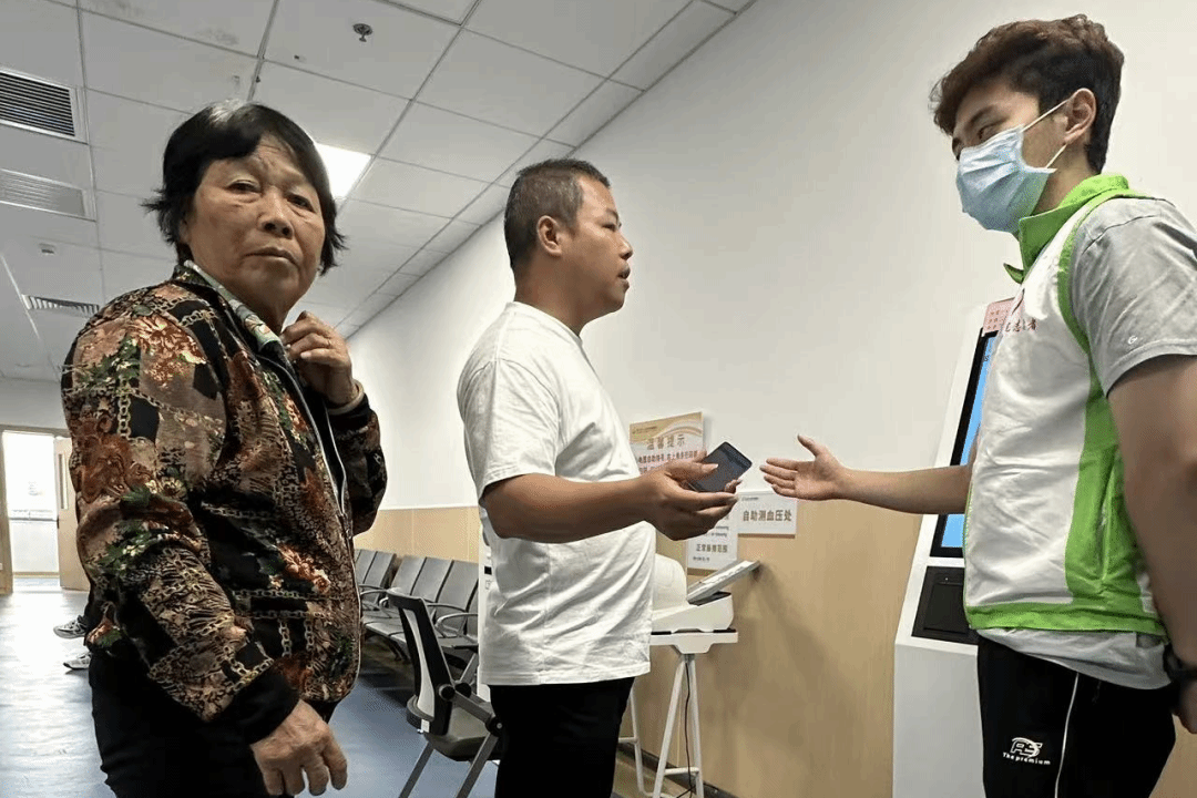 在这个过程中,我尤其记得一位不太会使用智能设备的老人家,在我的帮助下成功地挂到了号。他脸上舒展的笑容和连声的感谢,让我真切地体会到“赠人玫瑰,手有余香”的快乐。我还协助一位老人测量了血压。