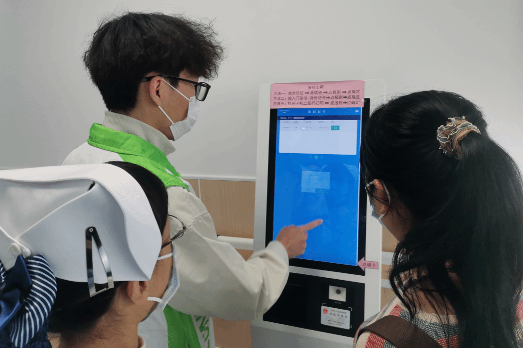 到岗后,我先跟着护士老师熟悉报到流程:帮患者在机器上刷就诊卡、核对诊室号。我的工作看似简单,但面对的常是满面焦虑的中老年患者,他们对着闪烁的屏幕不知所措,或因不熟悉流程而反复询问。在工作过程中,遇到一位奶奶拿着厚厚一沓检查单,紧张地问会不会错过叫号,我帮她确认报到成功后,又指了指候诊区的屏幕提示,她舒展眉头的瞬间,我心里满是暖意。