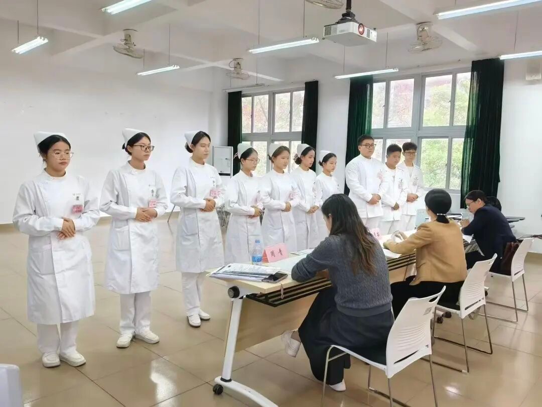 实操考核现场氛围严肃规范,各医院围绕护理技术操作标准严格考察。同学们将课堂理论与实训积累融会贯通,从物品准备到流程执行,每一步操作都精准规范、一丝不苟,扎实的专业功底与娴熟的技能水平在细节中得以充分体现。