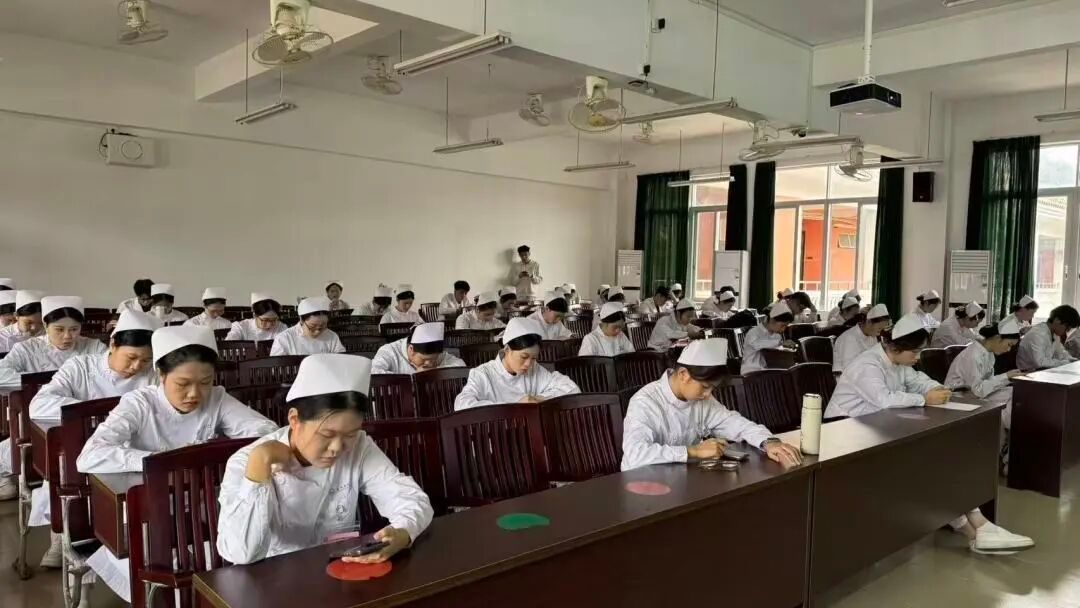 笔试考场内,同学们凝神专注、全神投入,方寸屏幕间,尽显扎实的护理学理论功底与沉稳的专业素养。