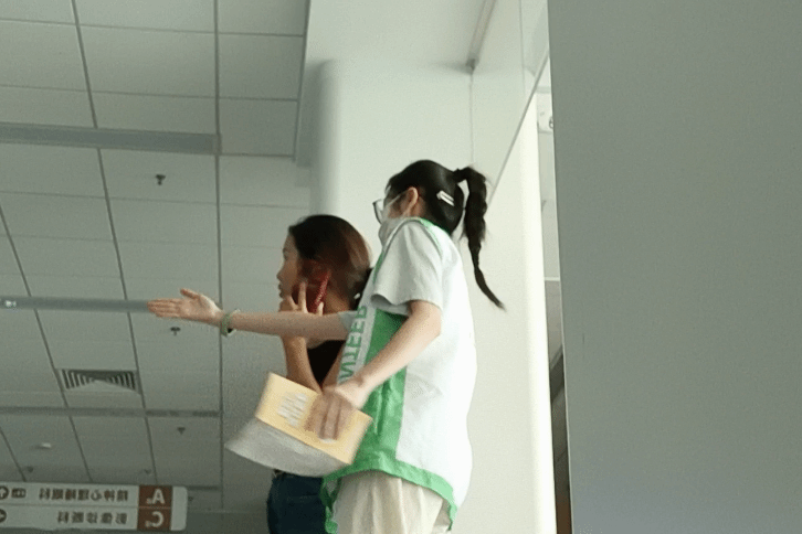 在指引过程中,我最直观的感受是在医院工作一定要很醒目。有些人会在扶梯前徘徊又不会主动询问志愿者或者周围的护士姐姐,这个时候就需要我们主动询问“阿姨,请问有什么可以帮到您的呢?”有些人会因为找了很久某个地方,心情变得很糟糕,在他们询问你的时候,语气就会暴躁,这时就需要对他们说“先生,不用着急,我来给您看看。”之后我们要告诉他,“我们现在在哪里?这个地方要怎么去?在几楼?做哪里的电梯?”有些行动不便的人,比如老年人、孕妇、腿脚不便的人,这时我们要主动上前提醒对方,“奶奶,您好,您可以从最近的电梯上去,这样会方便些。”