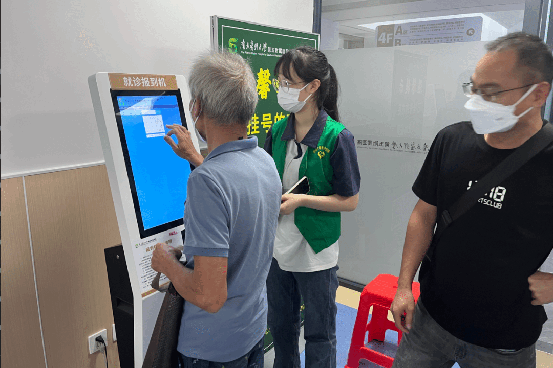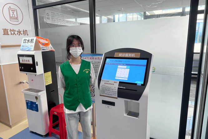 今天到南方医科大学第五附属医院来当志愿者,我被分配到的工作岗位是三楼抽血区的报到机。