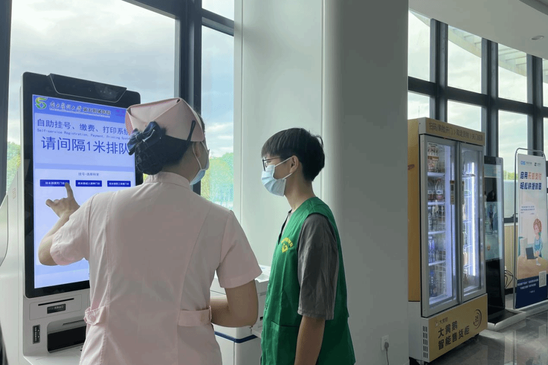 科室内,我看见了不同的人在等候,有年迈的夫妻俩、帮父母报道的子女等,老人家们可能对报到机的操作不熟悉,能感觉到她们的无助。在与患者及家属的互动中,我好似体会到了护患沟通的重要性。虽然我只是以志愿者的身份在帮忙,但我会想如何通过简单明了的言语和行动来提供更好的帮助,用什么语气语速和患者沟通。在帮助患者的过程中,我学着耐心地帮忙报到,也更懂得了如何去关心和与他人沟通。