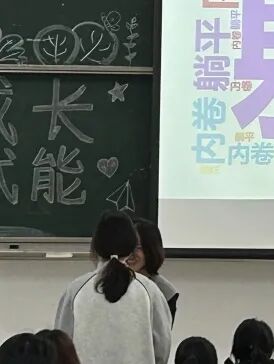 正式开讲前,黄老师通过互动,由“躺平、内卷、摆烂”这三个流行语引入主题:在大学中,我们要尽早规划好自己的职业道路,否则,只会迷茫的荒废四年的青春。