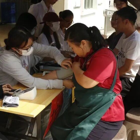 (志愿者为我校师生测量血压)