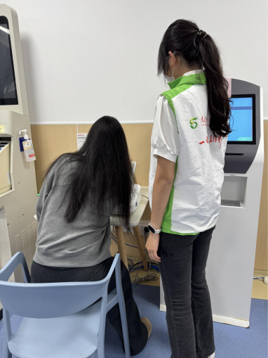 超声科患者涵盖各年龄段,不少老年患者对自助机操作陌生,亦有患者因身体不适而焦虑。起初我只机械指导步骤,后来逐渐明白:患者需要的不仅是操作指引,更是耐心与情绪安抚。我逐渐学会放慢语速、逐键讲解,帮老人核对信息并提醒检查前注意事项;面对急躁患者,则先倾听再引导,以缓解其不安。