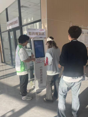 取药报到是患者就医流程中至关重要的一环。许多患者,尤其是年长者,对自助机操作不熟悉,面对复杂的界面常常手足无措。我的工作便是耐心引导他们刷处方单上的条码,完成报到流程。过程中,我学会了用最简洁清晰、通俗易懂的语言沟通,也学会了察言观色——一个焦虑的眼神、一次犹豫的操作,都是需要帮助的信号。当我帮助给一位八十多岁的老奶奶去到优先窗口拿到药后,她紧紧握住我的手连声道谢时,亦或是一位阿姨给予了表扬有眼力见,细心发现她没报到带她去报到,我感受到的不仅是被认可的喜悦,更是一种沉甸甸的责任感与担当。