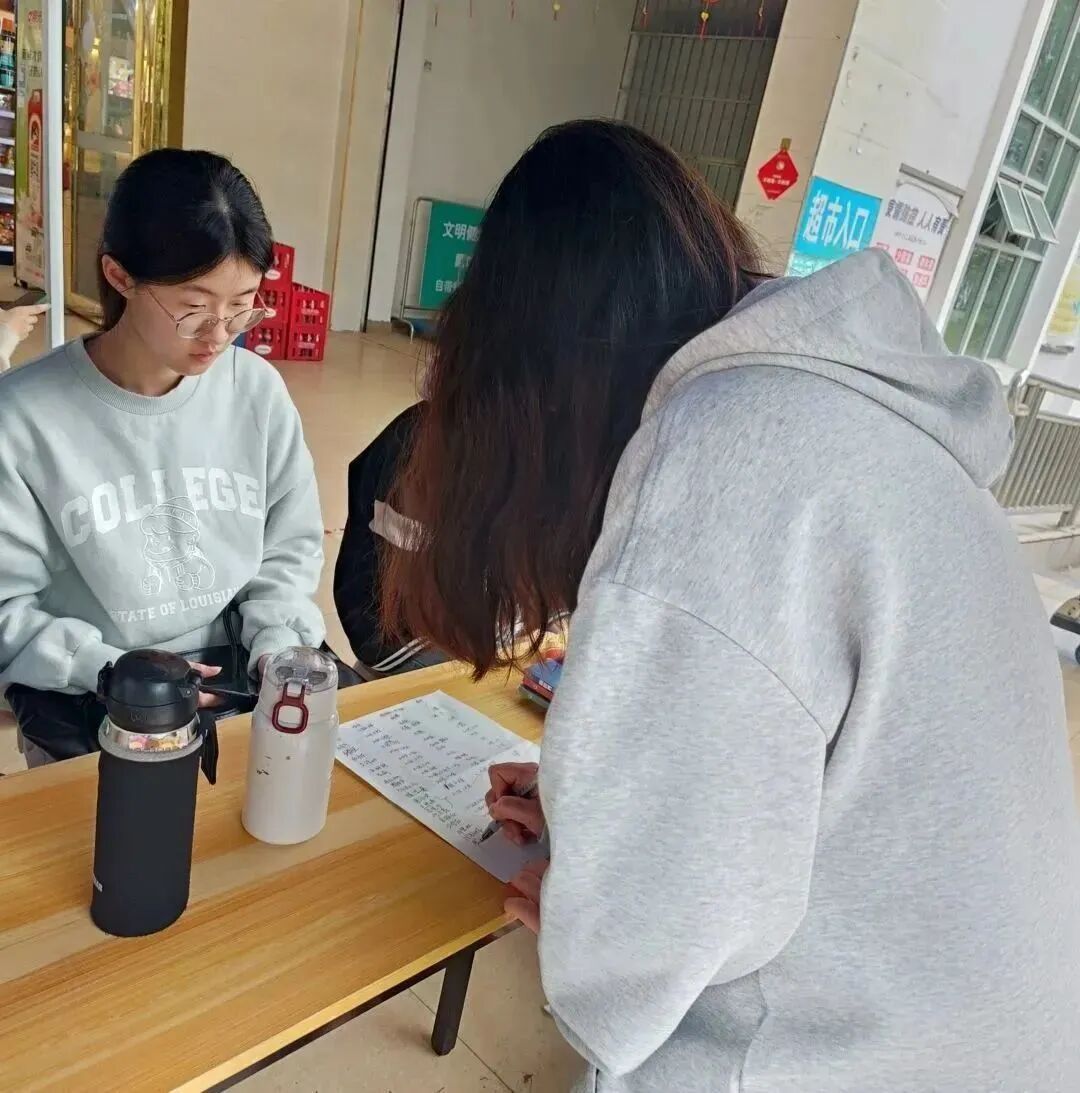 同学们纷纷提着自己的捐赠物品前来,不少老师也加入其中,献出自己的一份爱心,工作人员起身帮忙,清点、整理、收纳所捐赠的物品,指引同学们签写自己的姓名,活动现场十分有序。