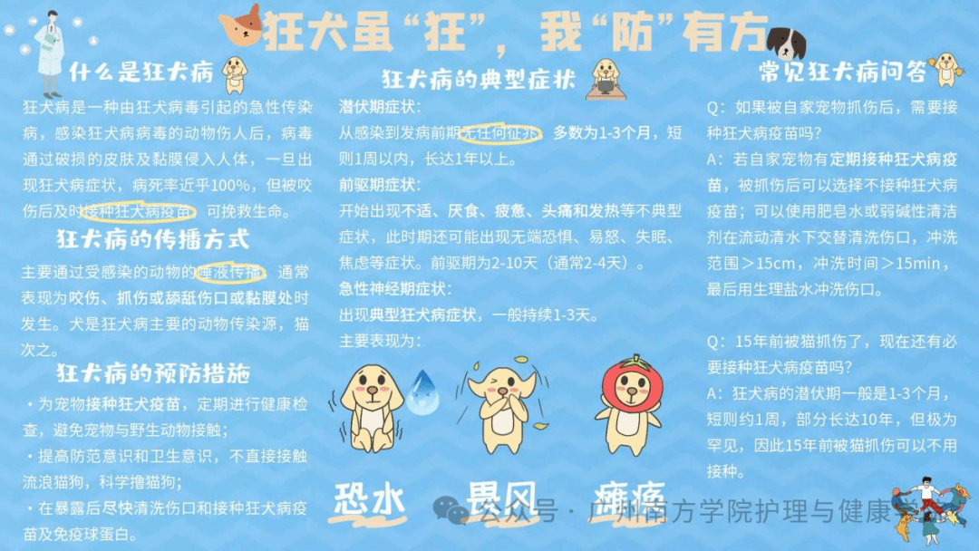 作品介绍:《狂犬虽“狂”,我“防”有方》通过讲解狂犬病的发病症状、传播方式、预防举措以及治疗手段四个方面,旨在增强公众对狂犬病的了解程度,助力民众成功规避狂犬病带来的潜在风险,提升大众对狂犬病的警惕性,引导广大民众在面对狂犬病时能够采取更为合理、有效的预防与应对策略,从而最大程度地保障自身及他人的生命健康安全。