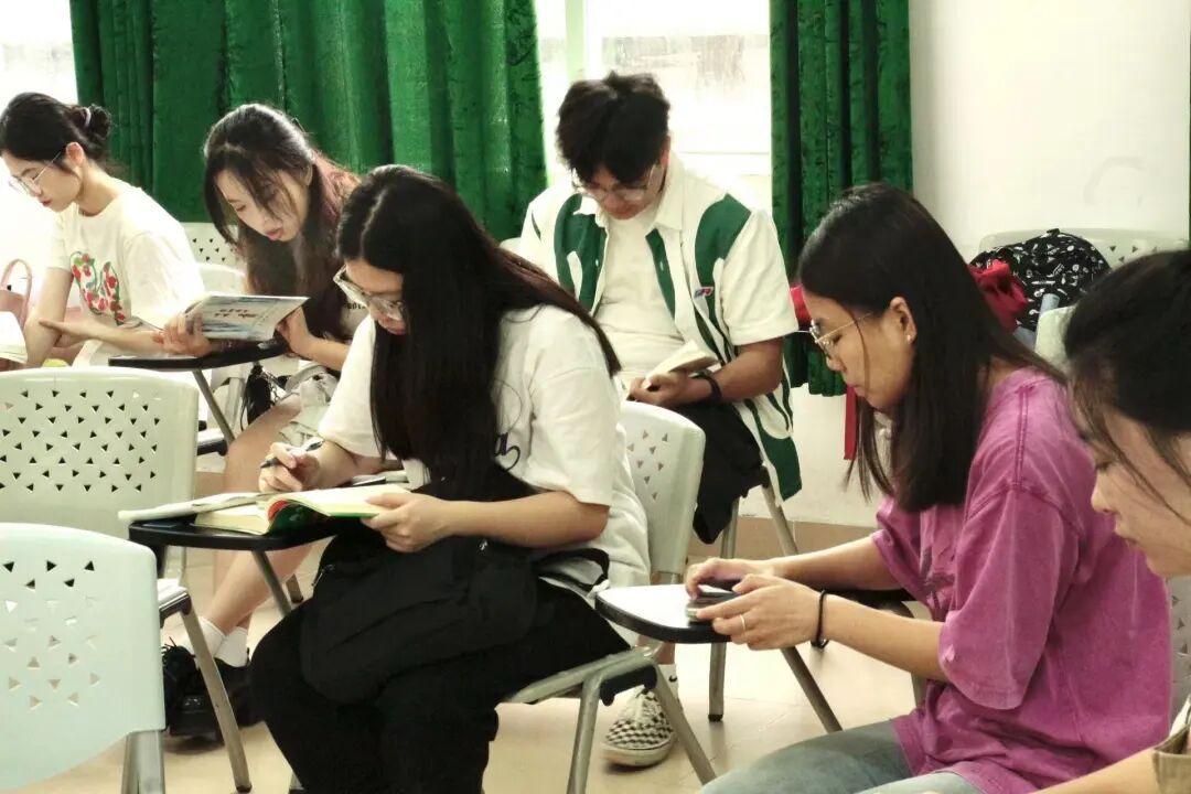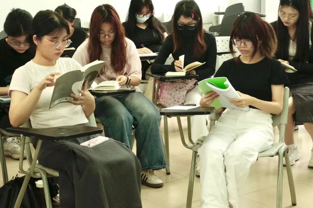 在这书香与花香弥漫的午后,同学们相约围坐在窗明几净的教室里,一起走进书的世界,感受文字带来的美好,只偶尔听见书页翻动的声音和轻柔的呼吸声。