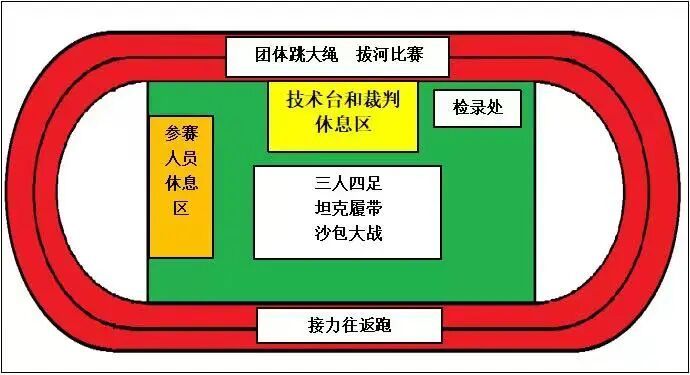 (4)注意:过程中队员的双脚必须踩在履带上,若履带断裂,比赛暂停,履带断裂的队伍及时找到工作人员进行替换后,在原地继续前进。
