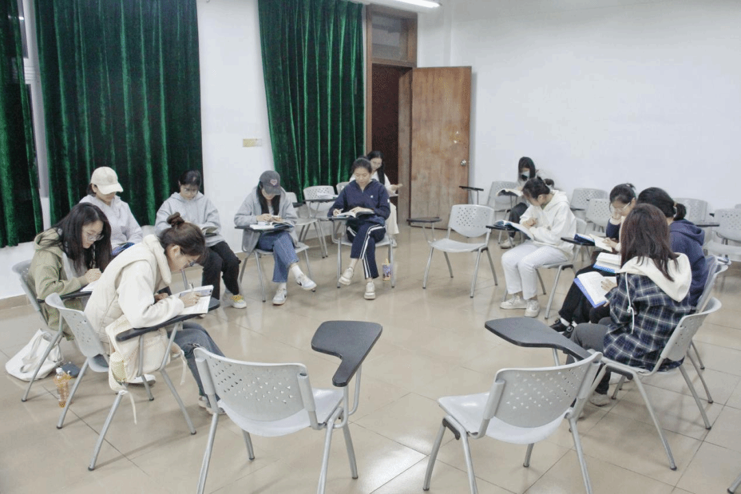 在集中阅读后,两个小组随即进入观点交流环节。《被讨厌的勇气》阅读小组围绕“被讨厌的勇气”“活在当下”等核心理念展开探讨,聚焦这些理念如何指导自己在学习、生活中坚守自我,从容应对外界评价与人生选择;《非暴力沟通》阅读小组结合书中内容,探讨了人际关系的相处原则,并分析了如何将“倾听与共情”“表达感受而非批判”等理念运用到人际交往、护理职业与患者的沟通中。