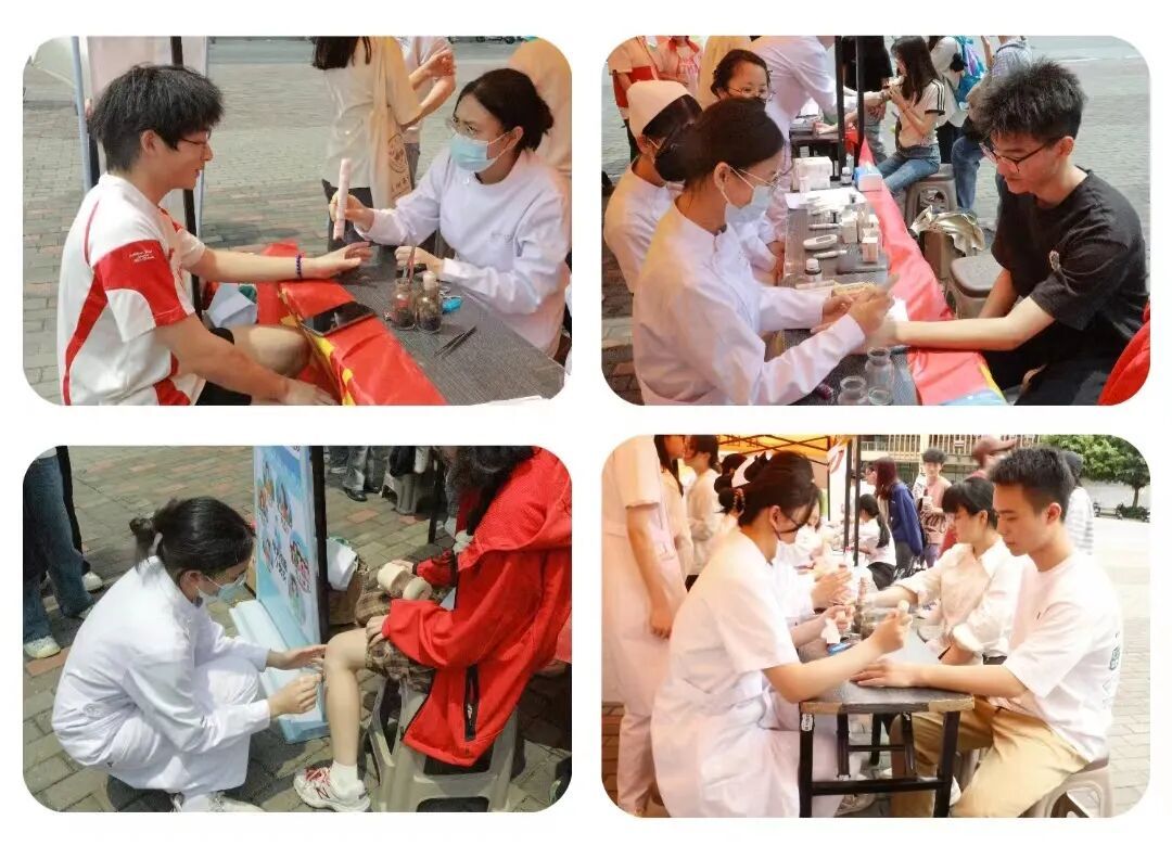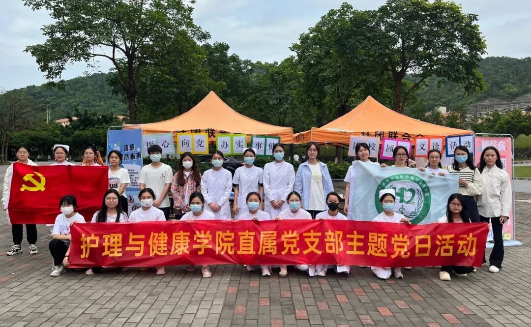 为进一步增强广大师生的健康防护意识,普及医疗卫生知识,弘扬“奉献、互助、进步、友爱”的志愿精神,用实际行动践行党员初心使命,4月10日,护理与健康学院直属党支部开展“医心向党办实事,健康义诊校园行”义诊活动。全体师生党员立足岗位做贡献,充分发挥专业优势,为在校师生提供医疗保健服务。