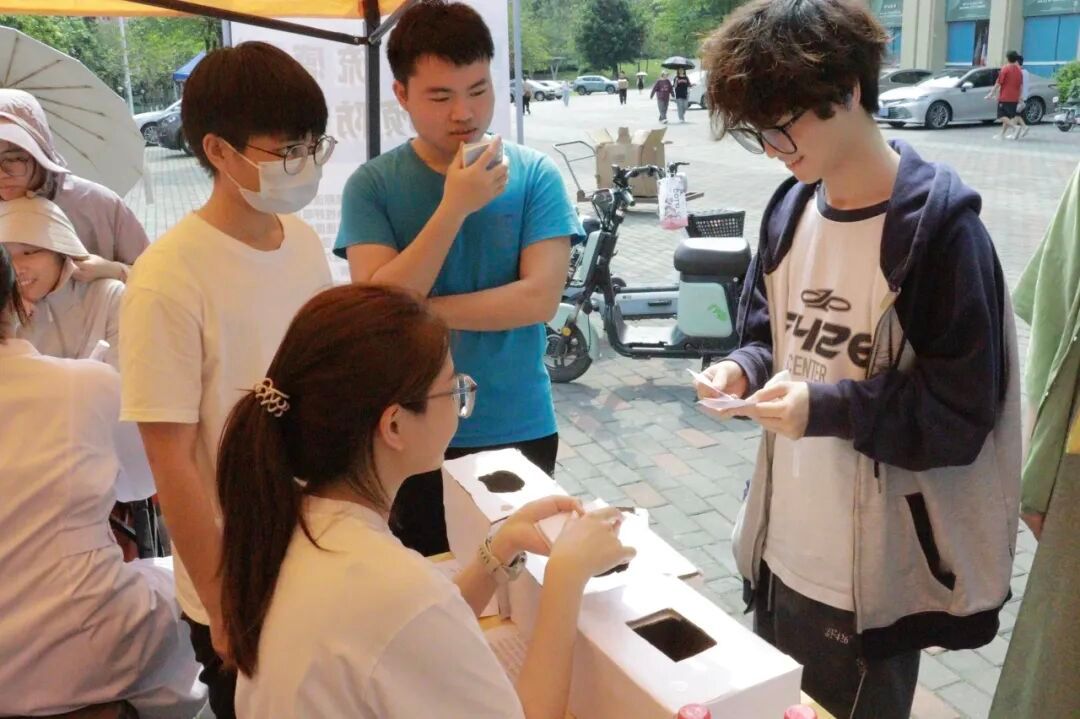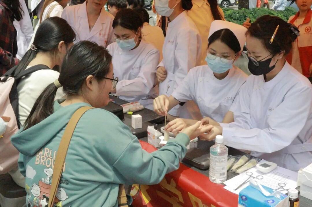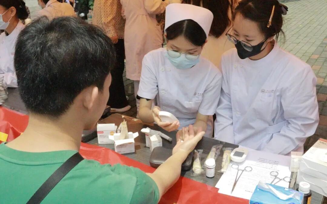 护理学子向前来测量血糖和血压的师生送上暖心叮嘱。均衡饮食、适量运动、控制体重、规律作息,养成良好的生活习惯,保持血糖正常值和避免血压“过山车”。