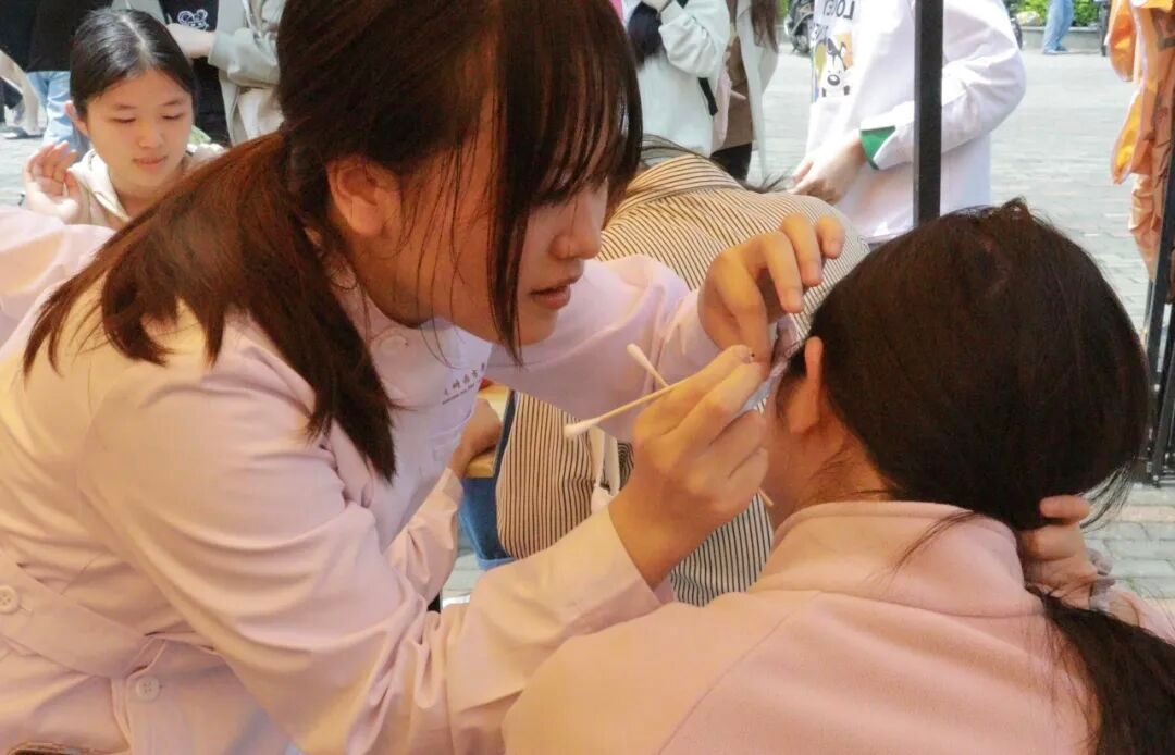 耳者,宗脉之所聚也。小小的耳朵其实大有保健功效,通过按压和揉搓耳朵上的不同穴位,可以缓解疲劳改善睡眠、缓解耳鸣、提高免疫力和预防感冒。耳穴压丸尽显神奇之力,吸引了众多师生前来体验。