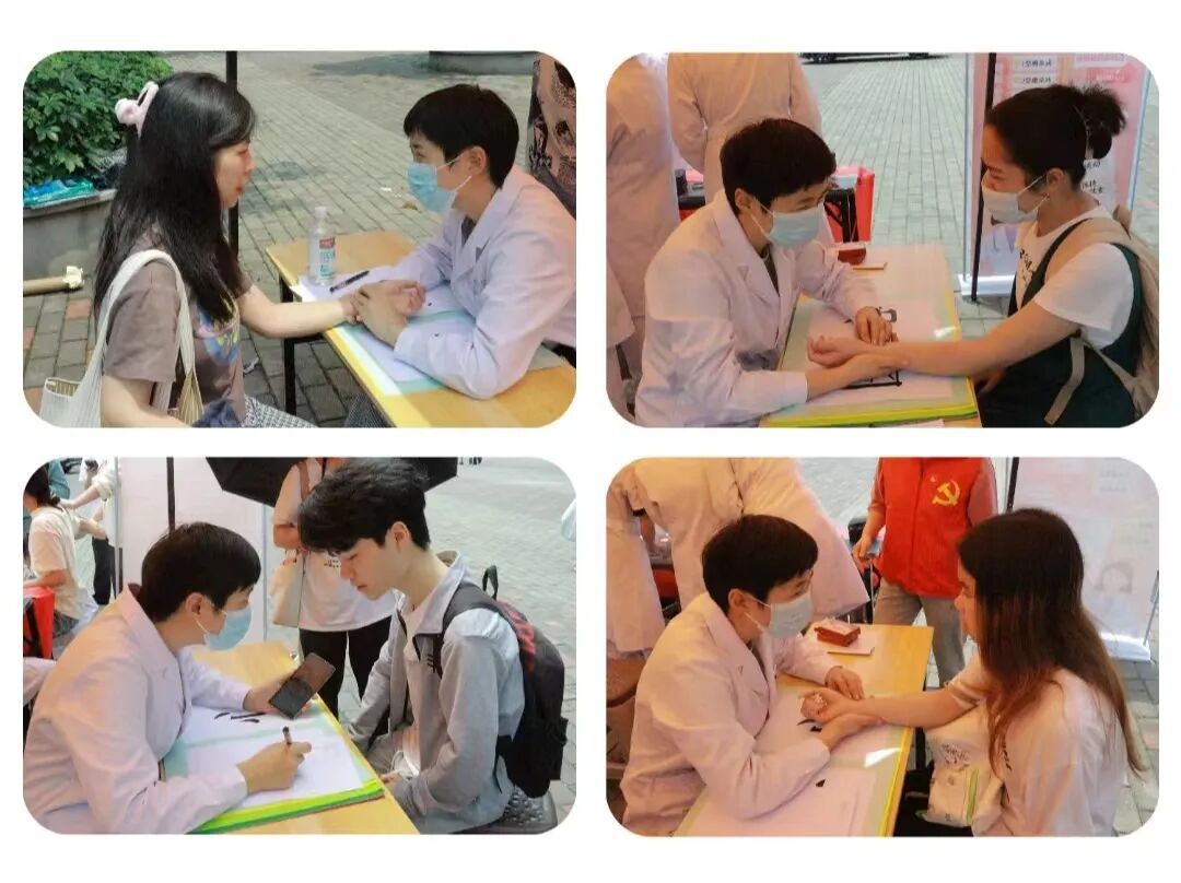 阴阳五行,望闻问切,中医把脉送安康。党员教师付雪为前来问诊的师生把脉,耐心细致解答师生疑问,并提供相应的治疗建议和日常保健指导。