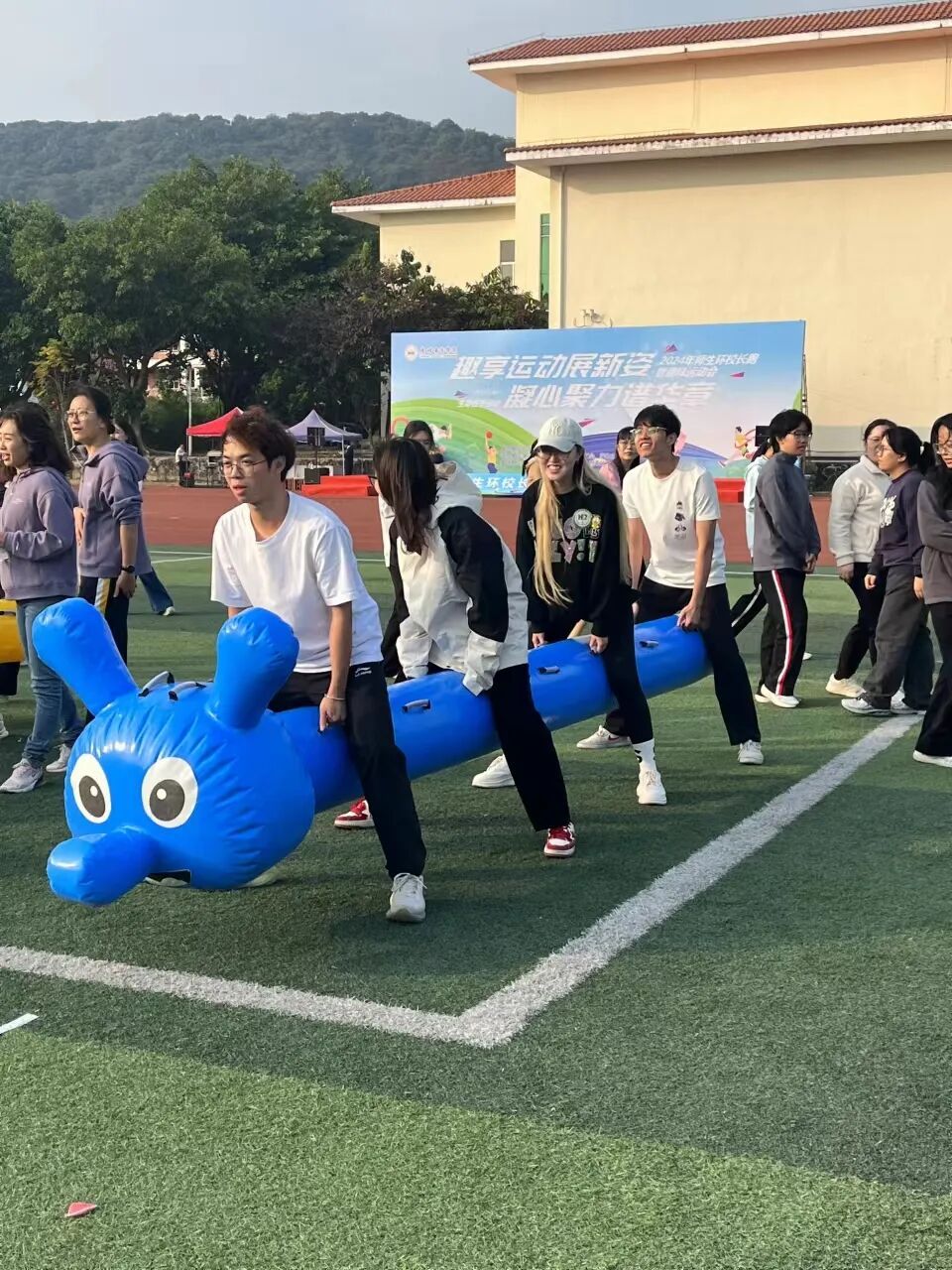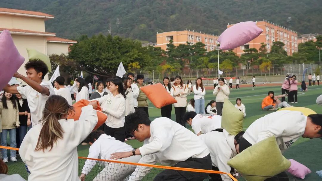 环校长跑结束后,紧张刺激的趣味运动环节精彩开场,无论是“一路向前”的快速接力,“趣味毛毛虫”的步伐一致,还是“枕头大战”的齐心协力,“昂首前行”的相互配合,都展现出我院师生强大的凝聚力和集体荣誉感。