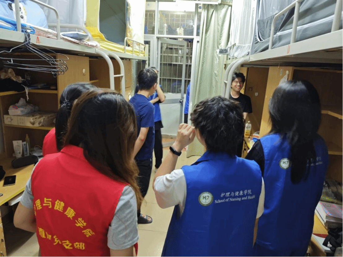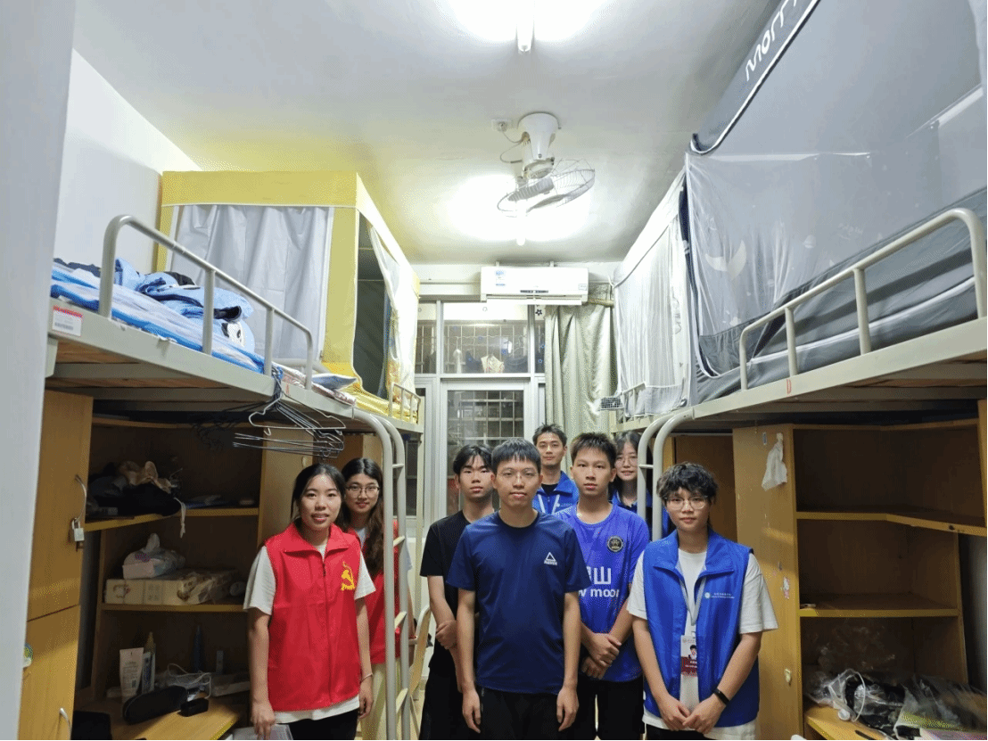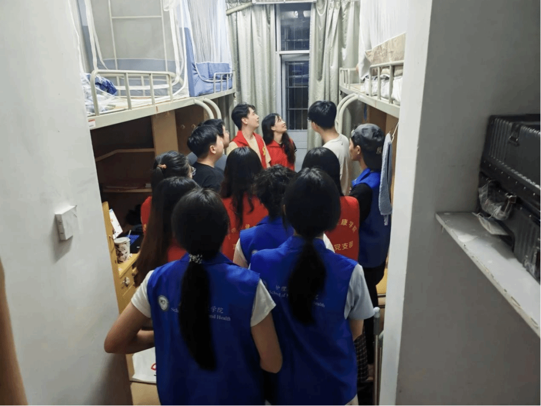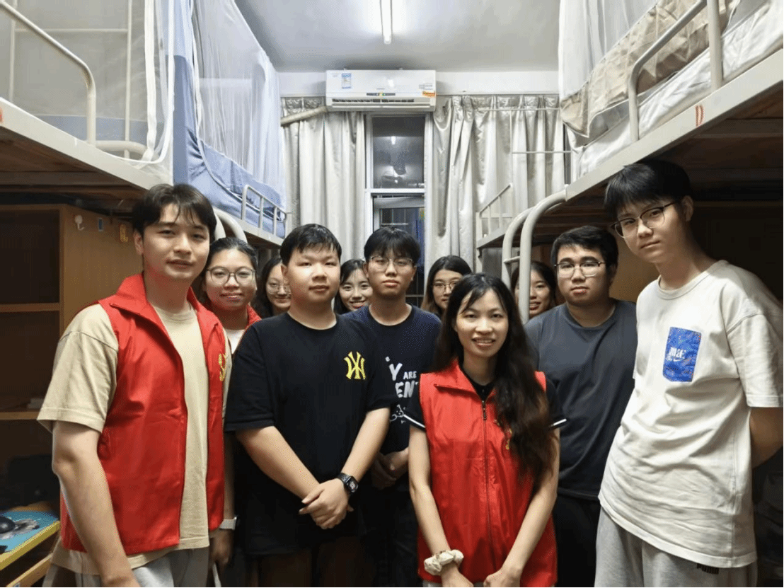 当晚,何送妹老师和李金豪老师便带领着在校党员与朋辈辅导员,开启了新生宿舍的走访之旅。面对新生提出的 “专业课程怎么安排”“食堂就餐有哪些方式”“社团报名什么时候开始” 等疑问,两位老师和学长学姐们细致解答的同时还主动分享校园生活小技巧。他们脸上始终挂着温和的微笑,亲切的语气、贴心的叮嘱,慢慢缓解了新生初入校园的陌生感与紧张情绪,让新生们倍感安心。