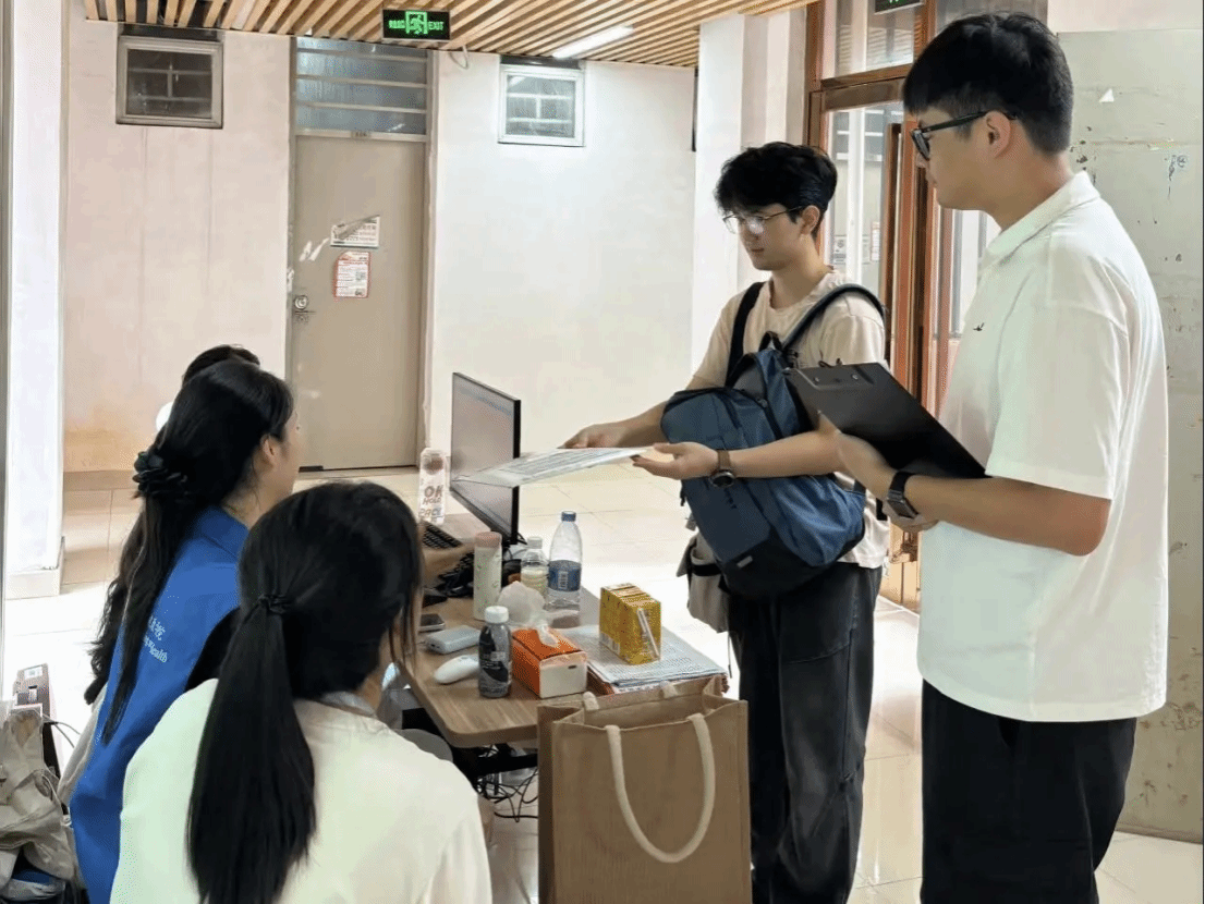 在这承载着满心期许的 “初遇” 时刻,迎新现场的宿舍区与报到处,四位老师始终耐心等候,细致回应新生的每一个疑问。一群胸前闪耀着党员徽章、身着志愿服的身影,更成为现场最动人的风景。志愿者们怀揣滚烫的热忱奔赴迎新前沿,以实打实的行动坚守初心、践行使命,肩扛手提帮新生搬运行李,从宿舍楼下送到宿舍门口,为初来乍到的新生们搭建起一条满含暖意、畅通无阻的入学通道。