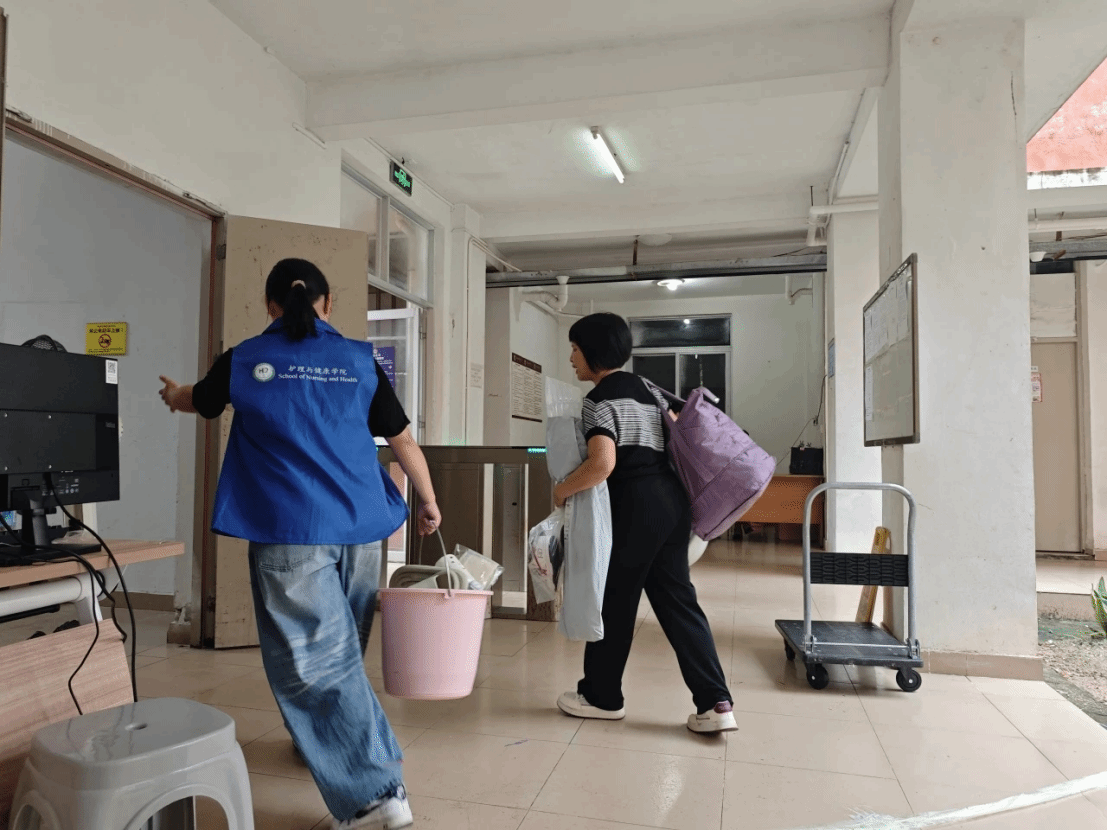 金秋送爽,喜气浓浓,护理与健康学院迎来了2025级新生。为切实传递学院大家庭的温暖,助力新生快速适应校园生活,同时彰显党员的先锋带头作用,9月21日,护理与健康学院直属党支部副书记兼学工办主任何送妹老师、团委书记宋唐老师、辅导员李金豪老师及戚晓韵老师带领迎新志愿者开展迎新工作。