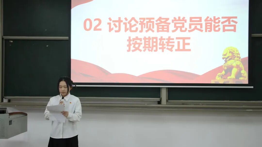 张幸怡等7名预备党员依次宣读转正申请书,分享了预备期内对党的宗旨与使命的进阶感悟,结合专业学习的精进、服务集体的实践等实际经历展开汇报,体现出思想觉悟的成长与责任意识的强化,真切传递出向党组织靠拢的坚定信念与积极向党的决心。