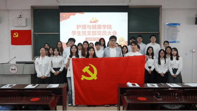 11月19日,护理与健康学院学生党支部在11-102教室召开2025年秋季学期预备党员接收大会,会议由学生党支部书记李金豪同志主持。
