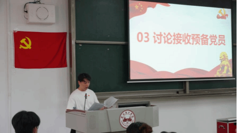 会议伊始,由学生党支部书记李金豪同志报告本次大会党员到会情况,宣布会议正式开始,并按照汇报一人,讨论一人,集中投票的形式进行。