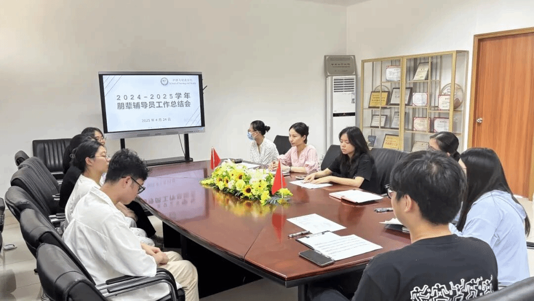 回首过往,不断成长。为更好地发扬朋辈引领精神,打造具有护理特色的朋辈辅导员团队,我院于2025年4月24日举行2024-2025学年朋辈辅导员工作总结会。护理与健康学院直属党支部副书记兼学生工作办公室主任翟晓涵老师,团委书记林晓兰老师,辅导员陈乐瑶、宋唐老师及成长导师陈秋铃、詹昕凌老师出席本次活动。
