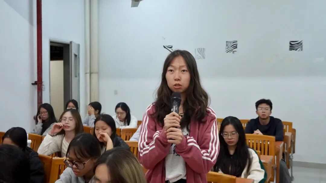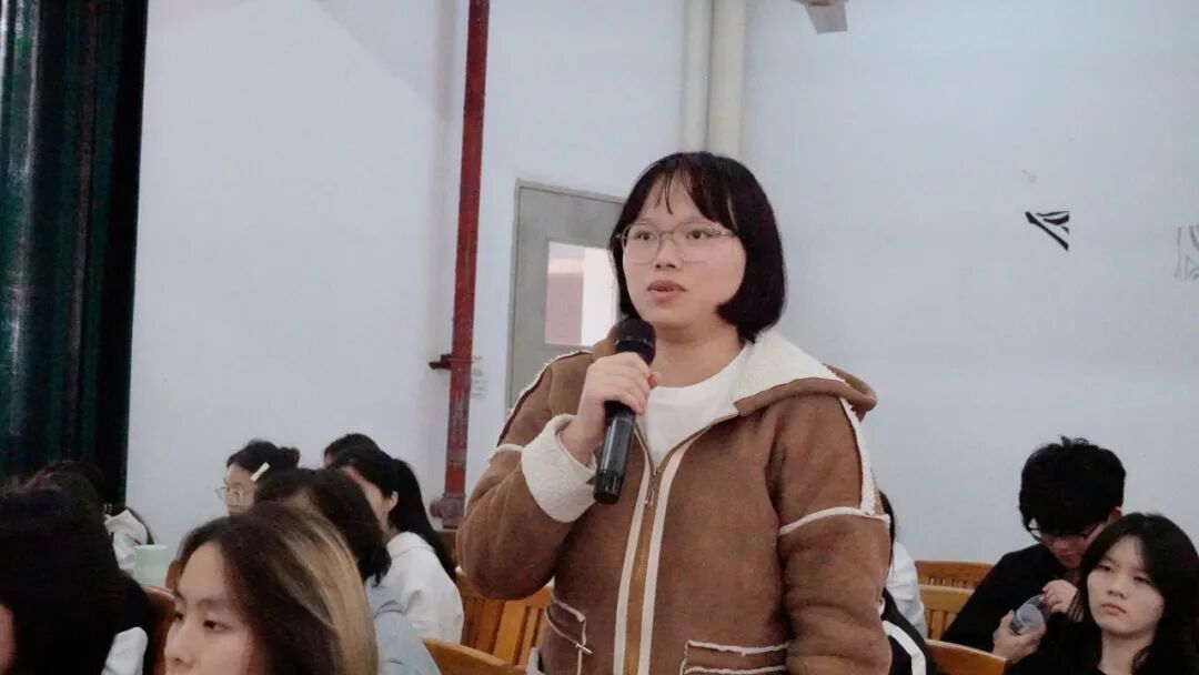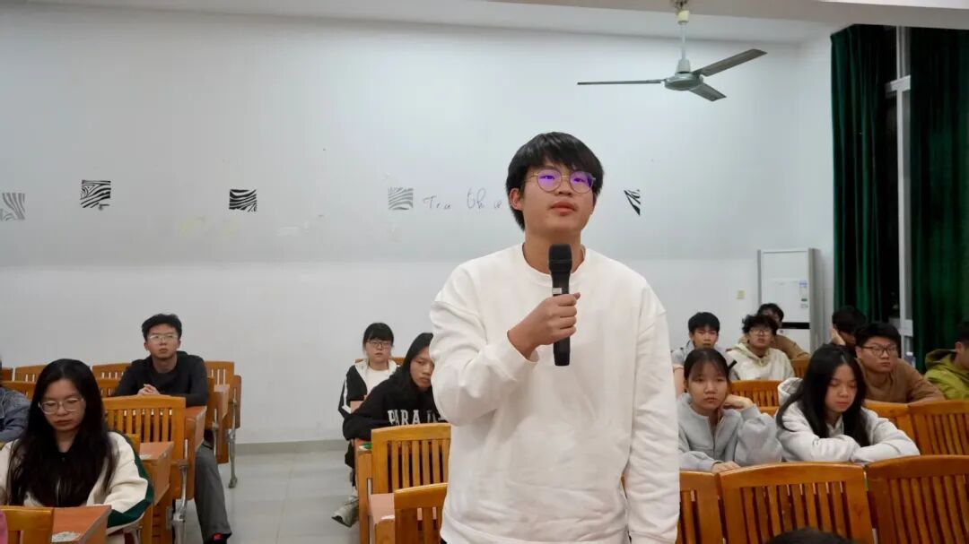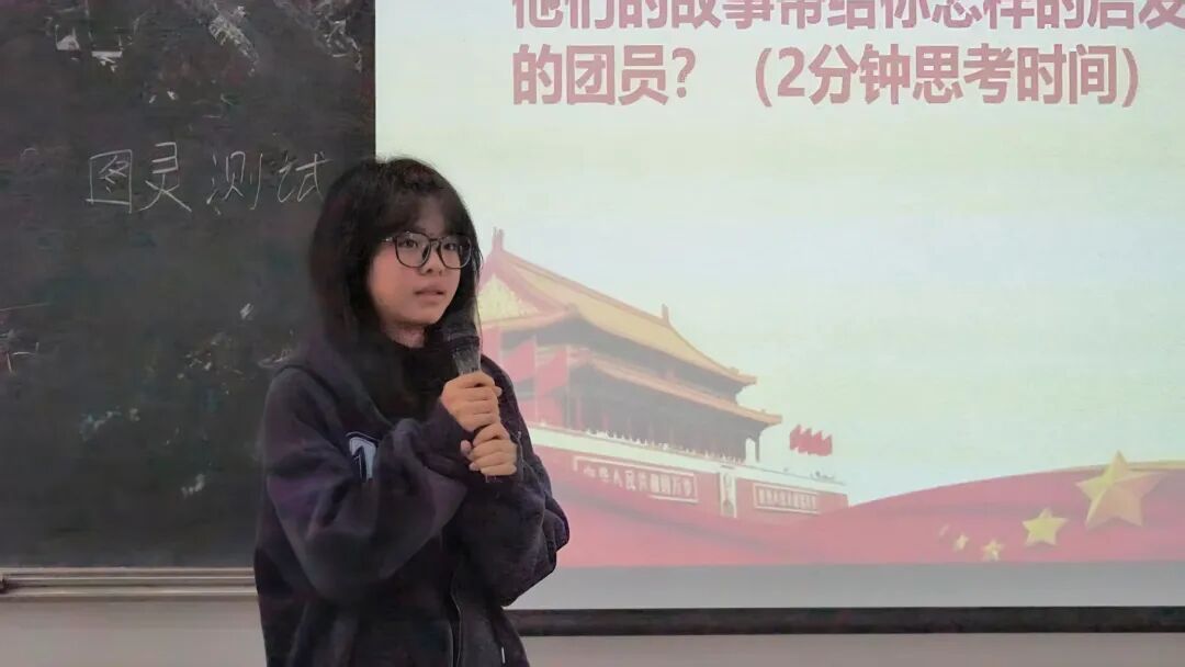 傅秀玫同学通过带领入团积极分子观看视频《追寻习近平总书记的初心·梁家河篇》,讲述习近平总书记的青春实践故事,展现了习近平总书记在黄土里扎根、在实干中成长、在为民服务中坚守的青春。互动环节,同学们聚焦“如何将习近平总书记的青春榜样力量应用于学习和实践”展开讨论,激励同学们在扎根实践、服务奉献中成长。最后,她鼓励入团积极分子们积极向榜样学习,练就过硬本领,在实践中厚植为民情怀,在困境里锤炼坚韧品格。