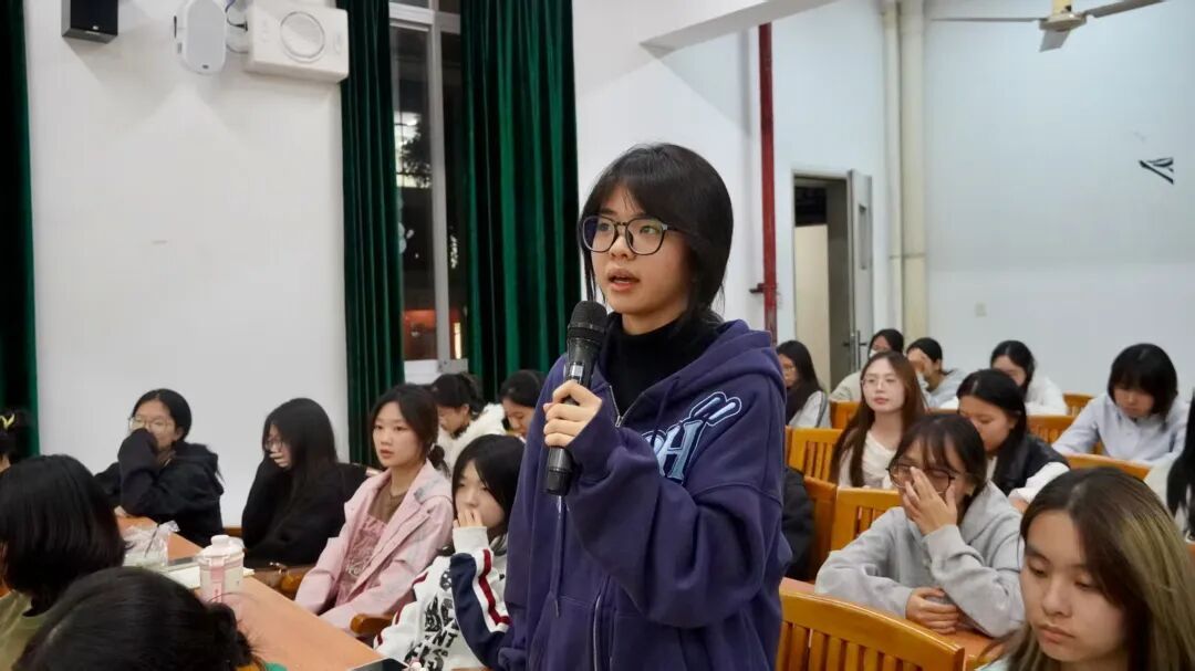 陈曼琪同学以时间为脉络,通过具体事例展现了从新民主主义革命时期到中国特色社会主义新时代,中国青年在不同历史阶段始终听党话、跟党走,为民族独立、人民解放抛洒热血,为新中国建设、国家富强忘我劳动,为祖国繁荣,锐意创新,为民族复兴、强国建设奋力拼搏。最后,她希望同学们能够坚定理想信念,筑牢思想根基,汲取榜样力量,练就“可堪大任、能担重任”的真本领。