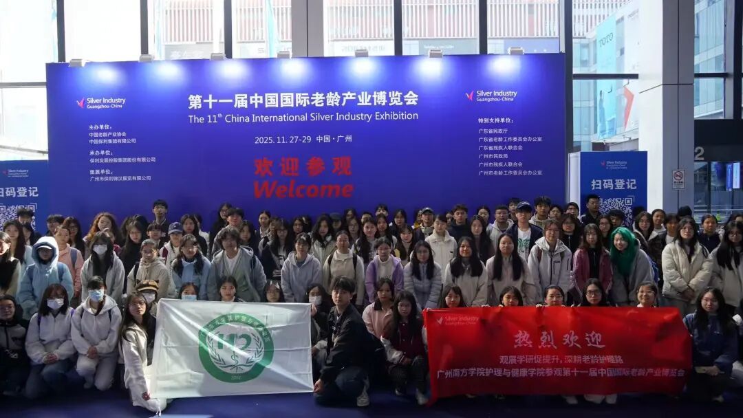 聚焦老龄产业发展前沿,深化产教融合育人实践,11月27日到29日,第十一届中国国际老龄产业博览会(SIC)在广州保利世贸博览馆隆重举行,广州南方学院护理与健康学院受邀再度参展,本次学院组织 140 名师生代表赴展交流。这是学院自2023年起连续第三年亮相该国家级行业盛会,累计参与师生已超500人次,充分彰显了学院深耕老年护理教育、践行“三全育人”理念的坚定决心。