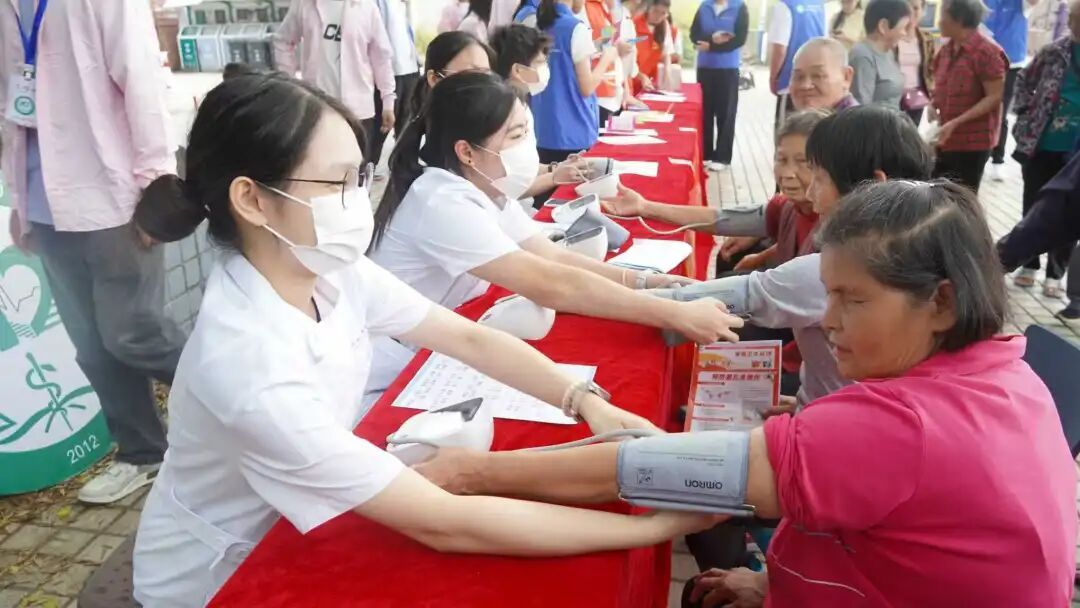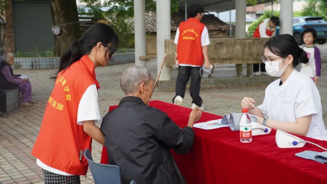 活动现场,志愿者为村民提供免费的血压测量服务,针对血压偏高的村民,结合其日常饮食,介绍如何控制和调节血压,通过图文宣传单与通俗方言讲解,如三高自测、健康饮食指南、如何预防基孔肯雅热、海姆立克急救法、秋冬疾病预防和“1张图学会心肺复苏”,让健康知识“听得懂,用得上。”经实地走访调研,部分年迈村民不便外出,志愿者立即响应,携带设备与纪念品主动进行入户宣讲,将健康知识送到村民的家中。